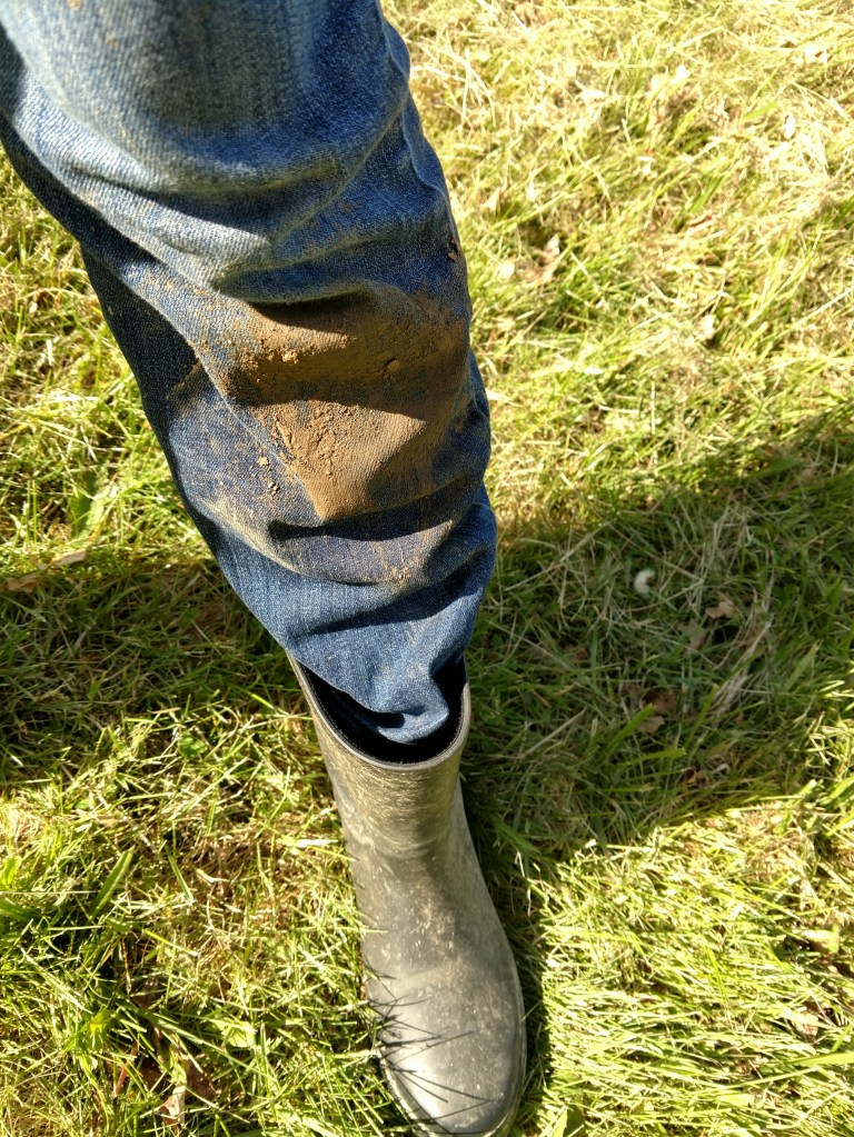 And because it’s such a muddy patch, the earth is soft enough for a distracted writer of children’s books with a good shovel, a sunhat, and some pants she doesn’t care about to dig that hole herself.