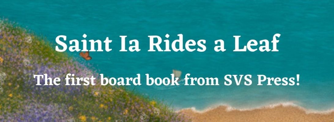 St. Vladimir’s Seminary Press published their first board book this year – Saint Ia Rides a Leaf, by Melinda Johnson (yes, me!), illustrated by Kristina Tartara – and Kristi and I are already contracted for a second board book with them. SVS is returning from a hiatus in children’s publishing. You’ve probably seen some of their older children’s books, many of which are still in print, but this is a season of change and development for them. It’s a fun time to jump into the line up.
